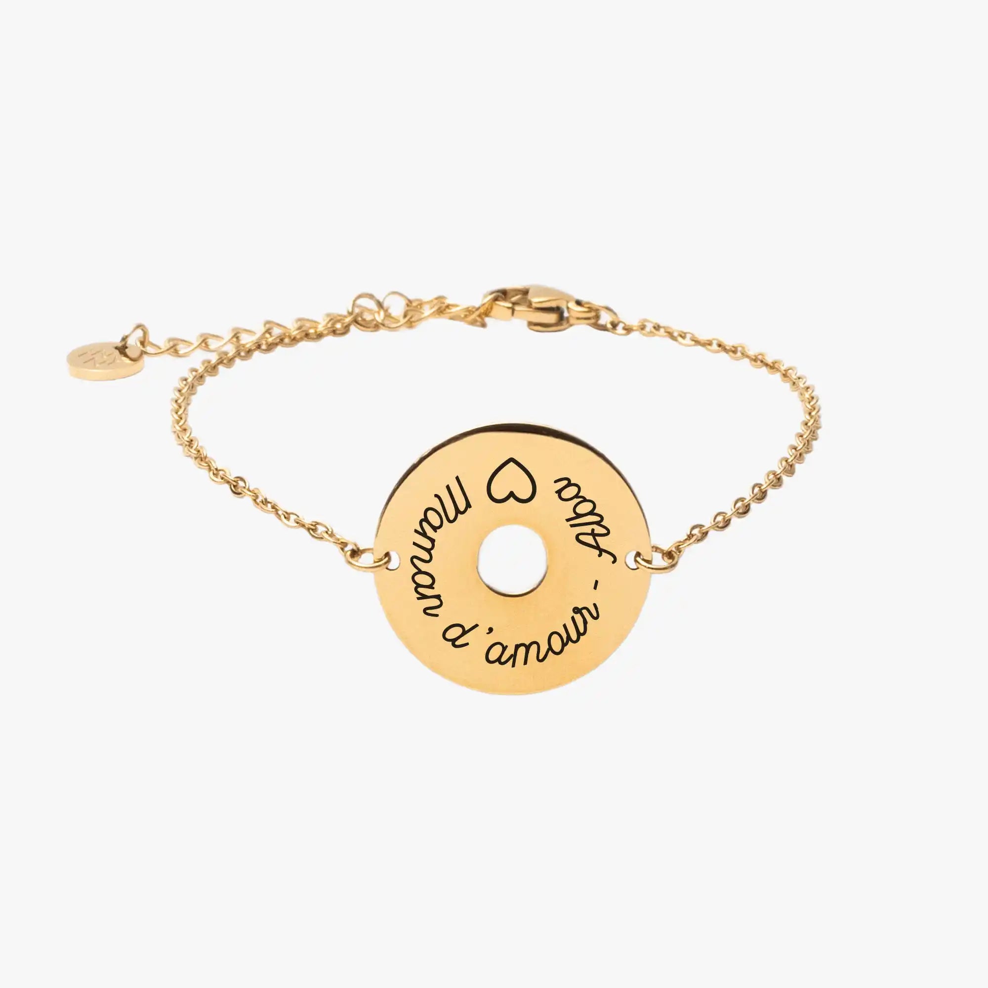 Créez un bracelet personnalisé unique, en gravant la médaille au recto et au verso. Votre bijou sera soigneusement personnalisé dans notre atelier en France et expédié sous 48h.