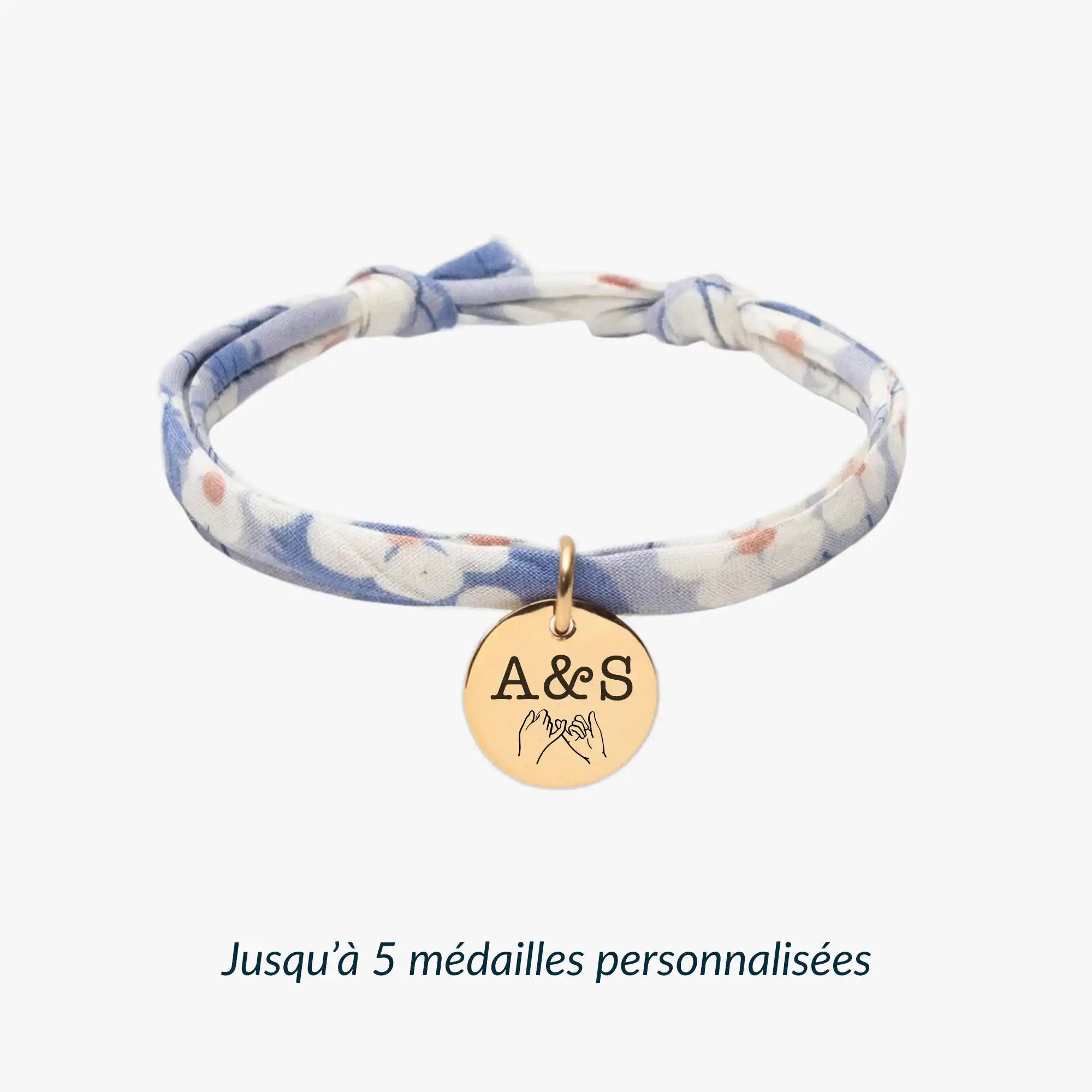 Créez un bracelet Liberty personnalisé unique, en choisissant jusqu'à 5 médailles gravées (recto et verso) et parmi 22 motifs de ruban. Votre bijou sera soigneusement personnalisé dans notre atelier en France et expédié sous 48h.