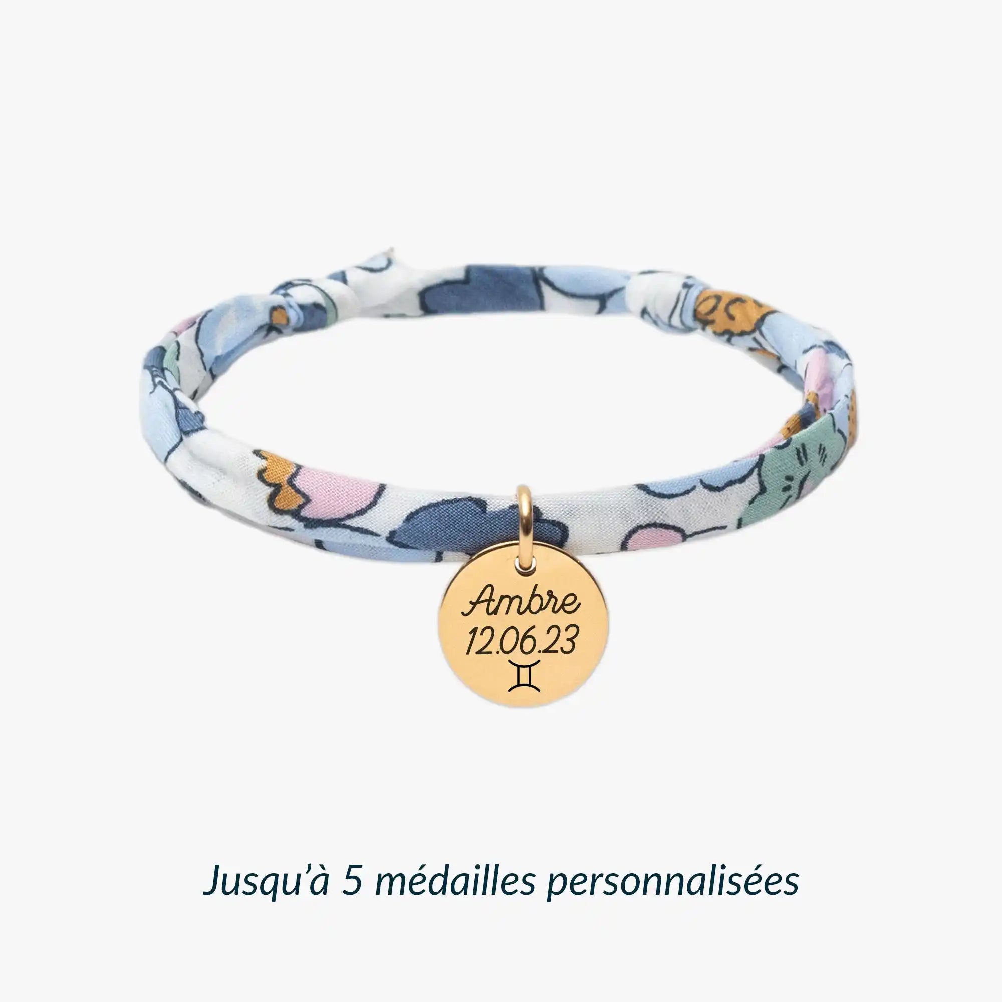 Créez un bracelet Liberty personnalisé unique, en choisissant jusqu'à 5 médailles gravées (recto et verso) et parmi 22 motifs de ruban. Votre bijou sera soigneusement personnalisé dans notre atelier en France et expédié sous 48h.