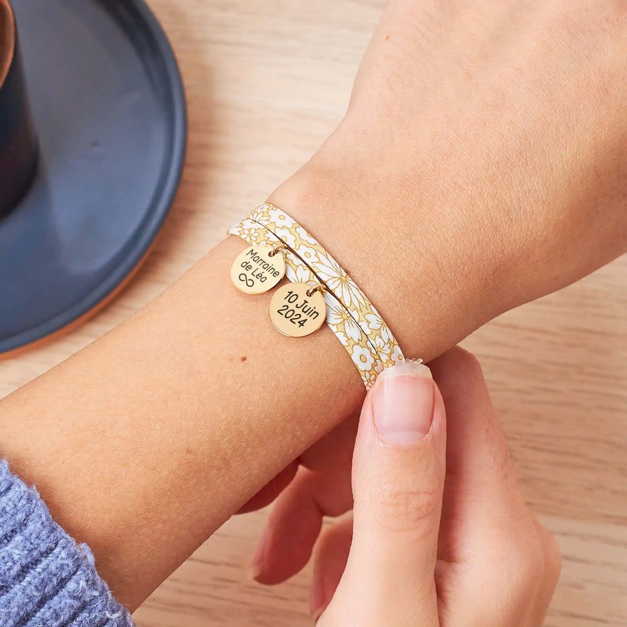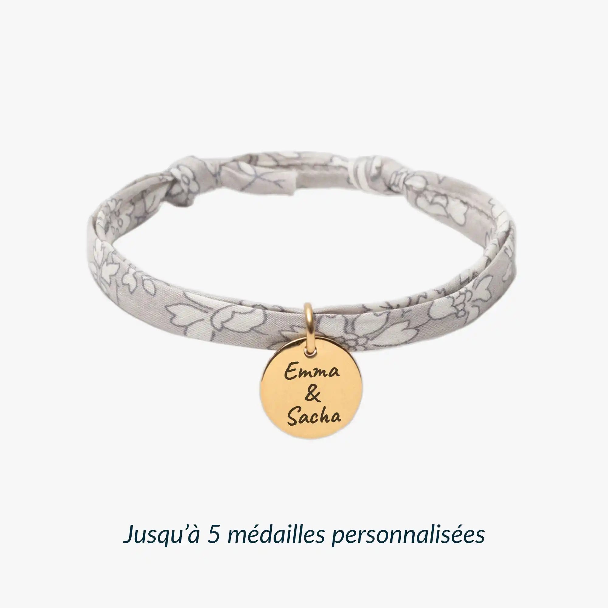 Bracelet personnalisable en tissu Liberty et médailles de 12 mm