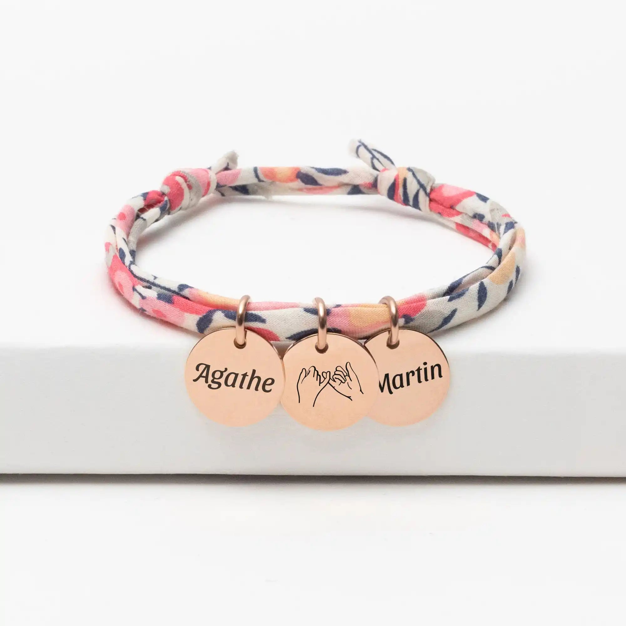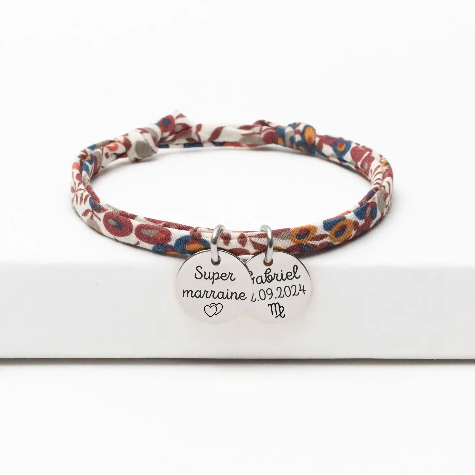 Bracelet personnalisable en tissu Liberty et médailles de 12 mm