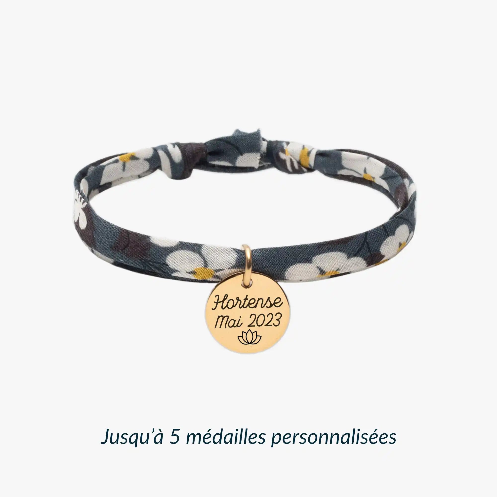 Bracelet personnalisable en tissu Liberty et médailles de 12 mm