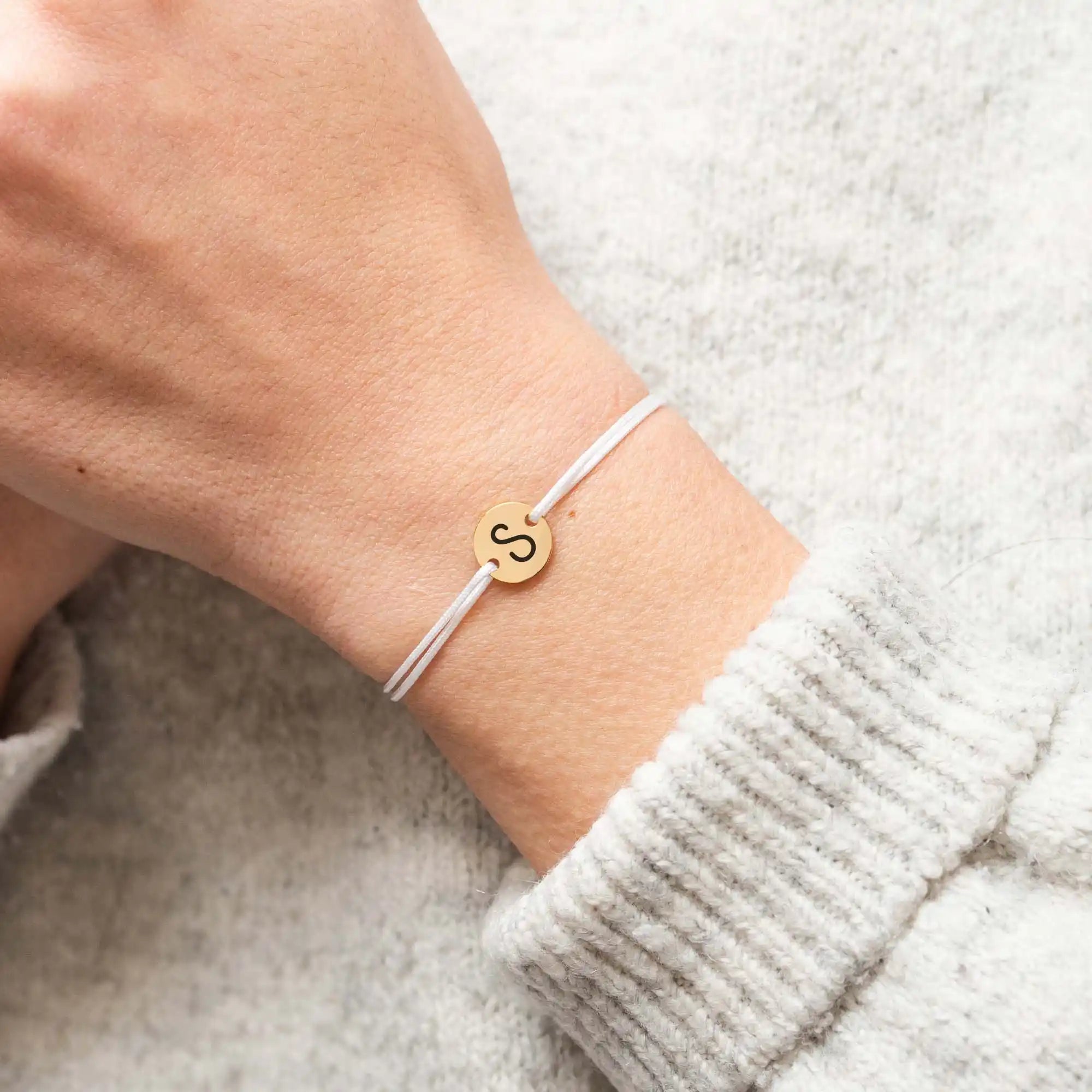Bracelet fin avec cordon blanc ajustable et médaille de 10mm