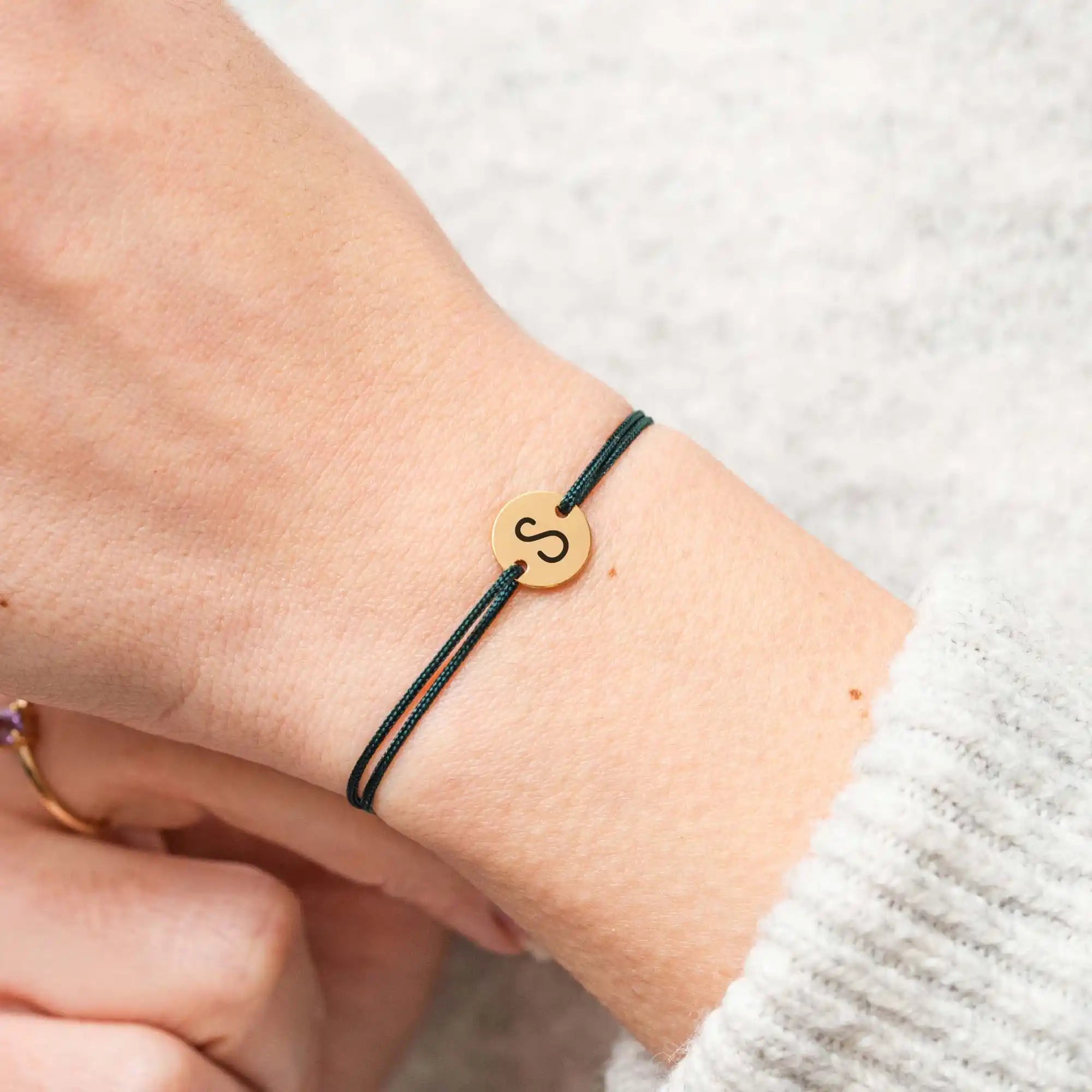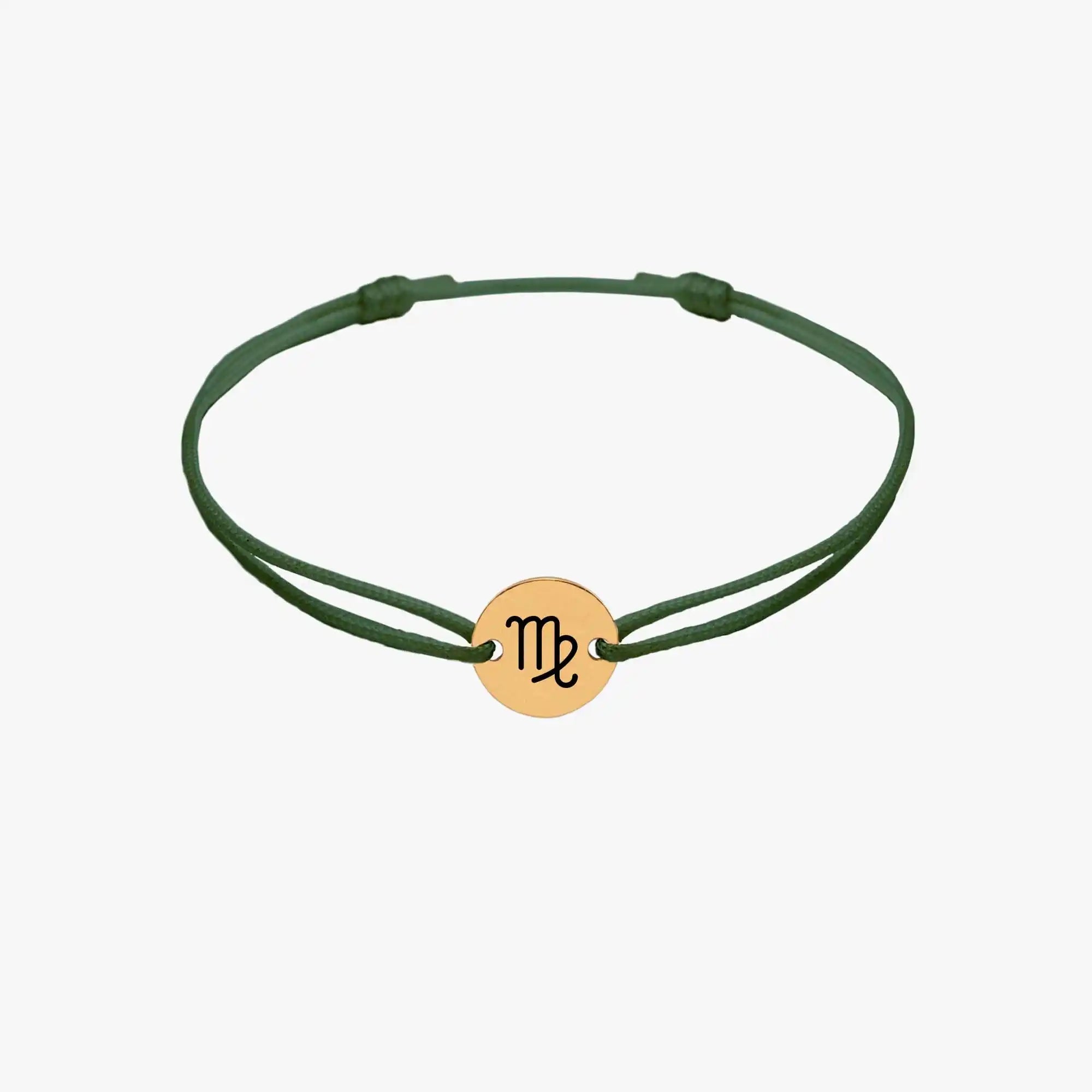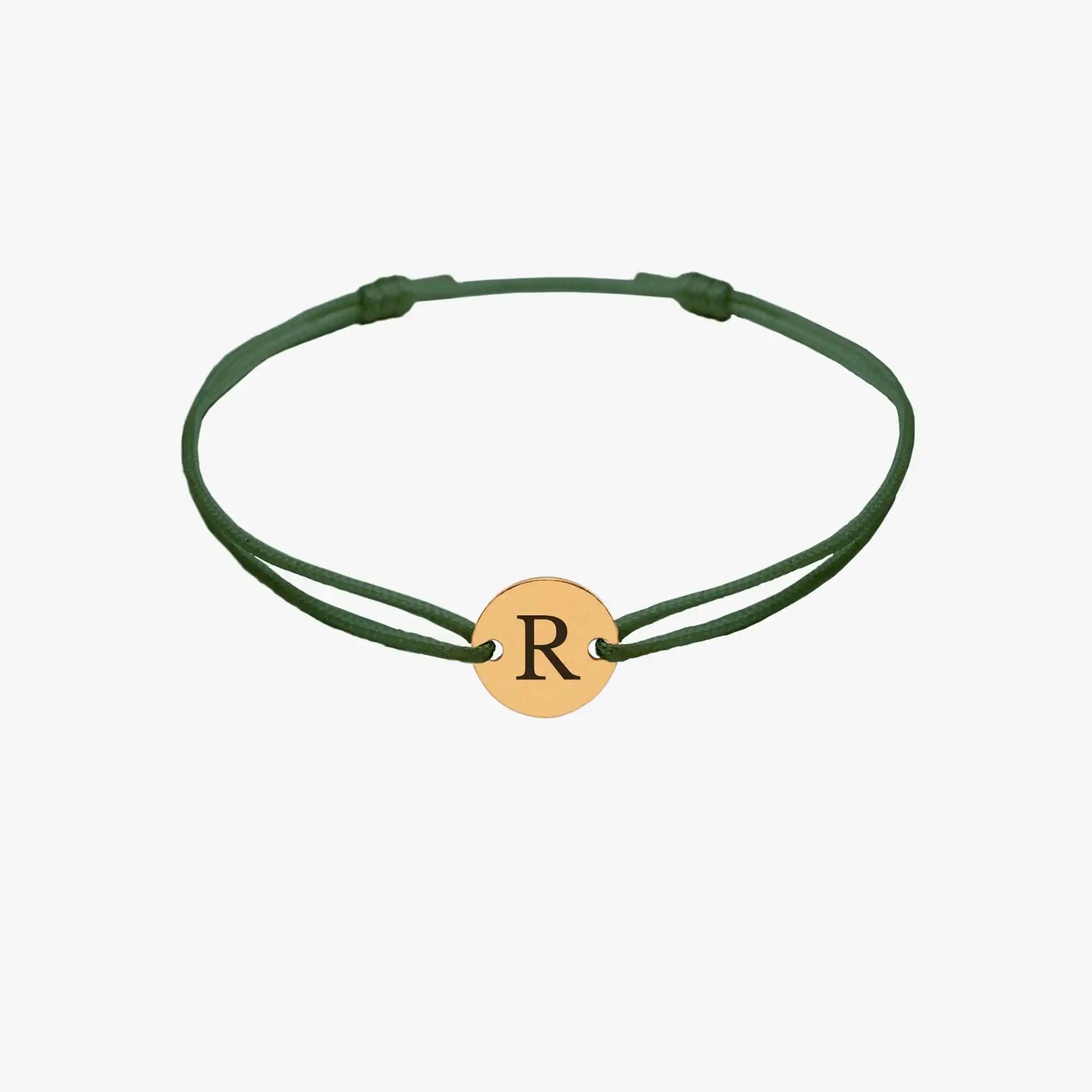 Bracelet fin avec cordon vert ajustable et médaille de 10mm