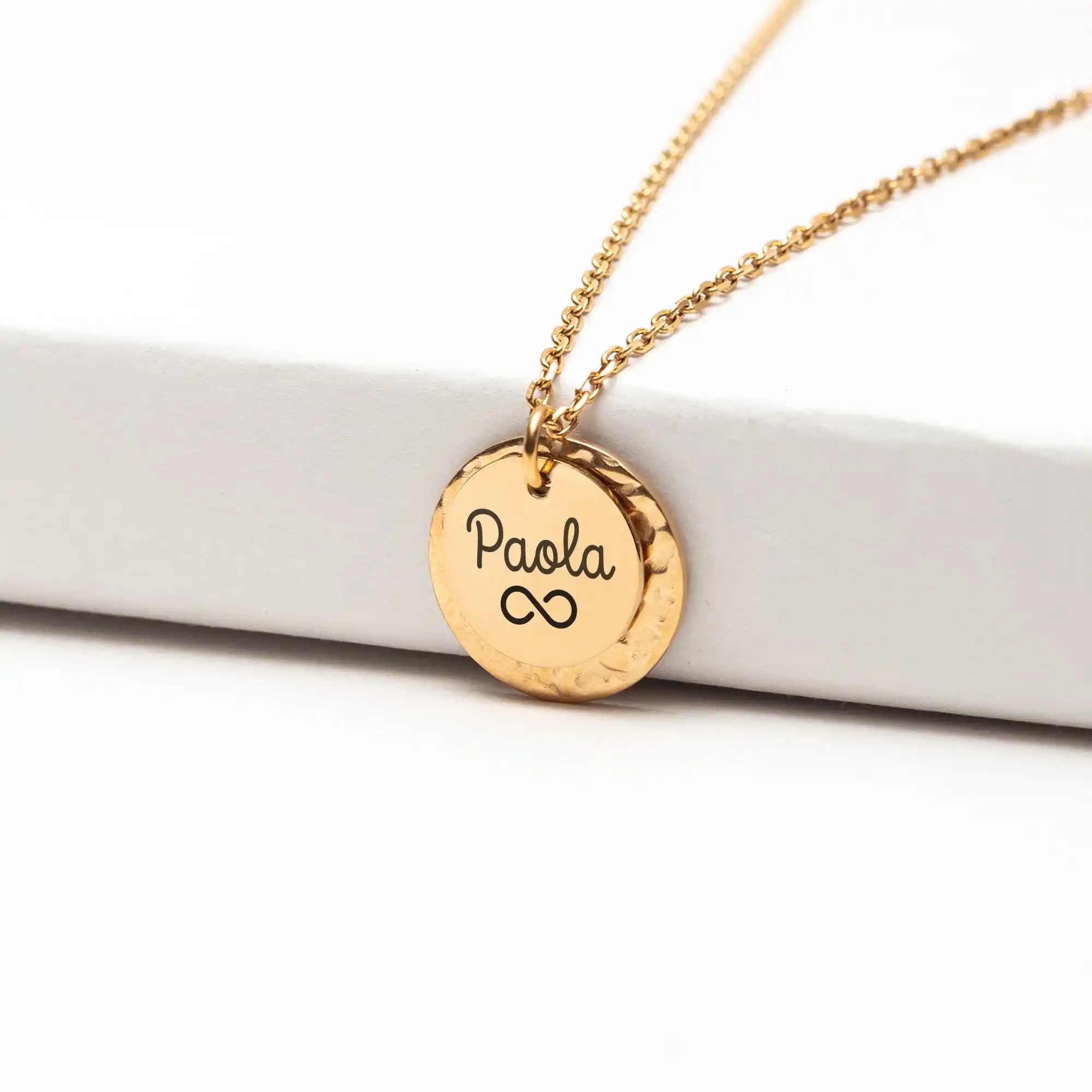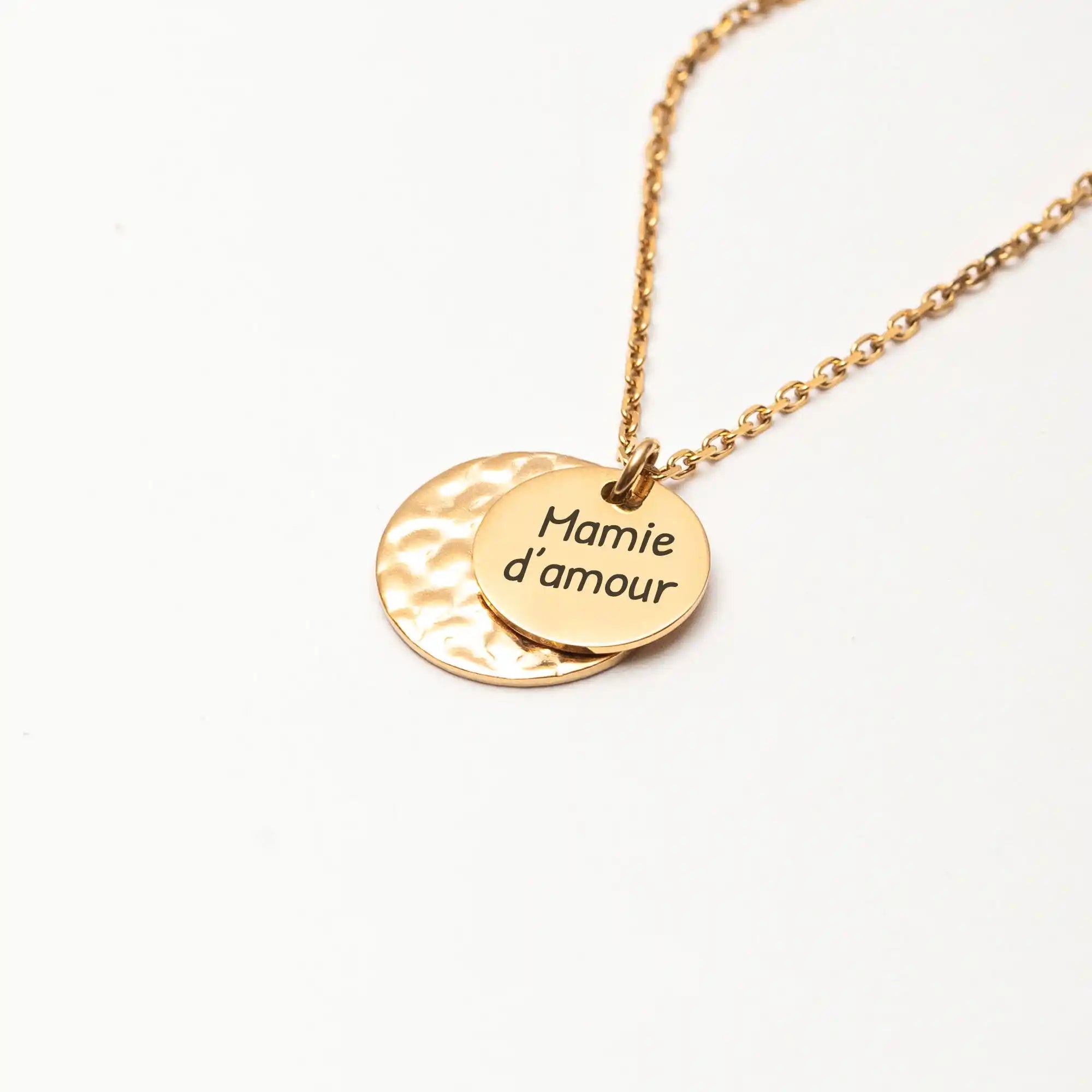 Créez un collier personnalisé unique, en gravant la médaille au recto et au verso. Votre bijou sera soigneusement personnalisé dans notre atelier en France et expédié sous 48h.