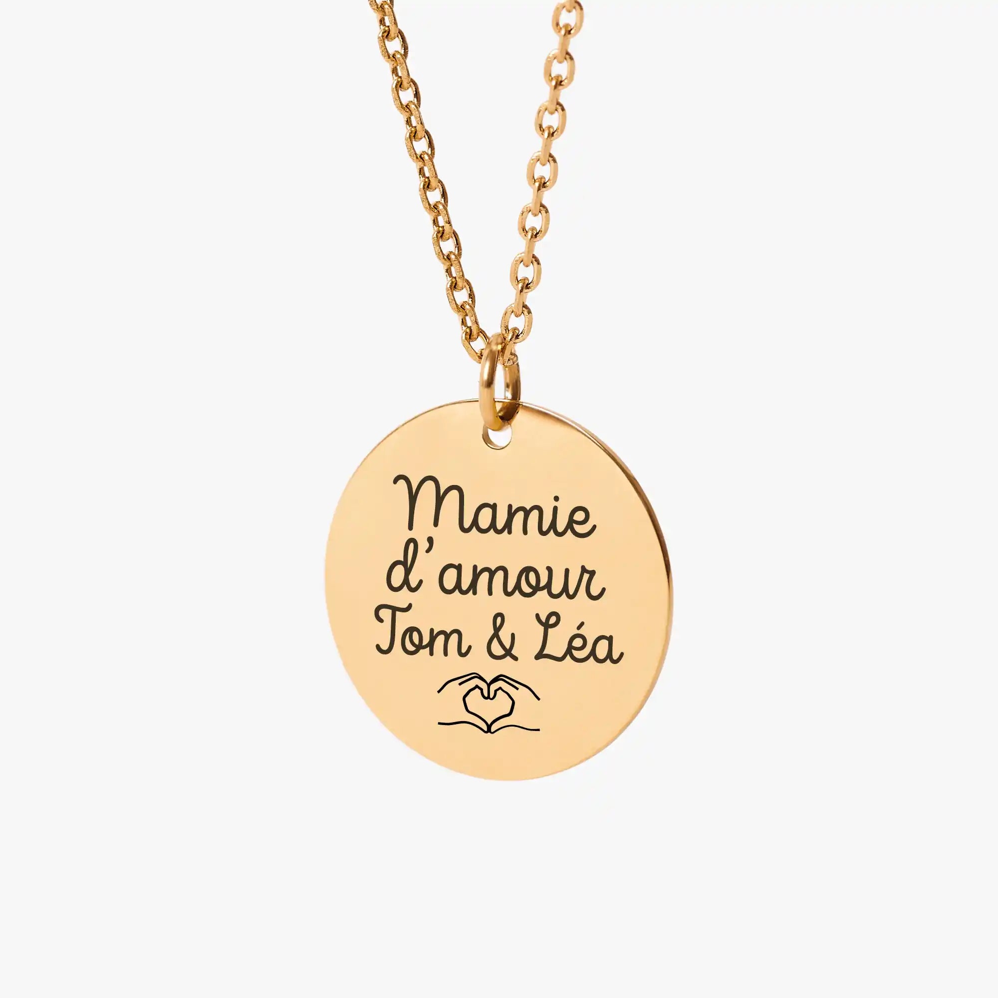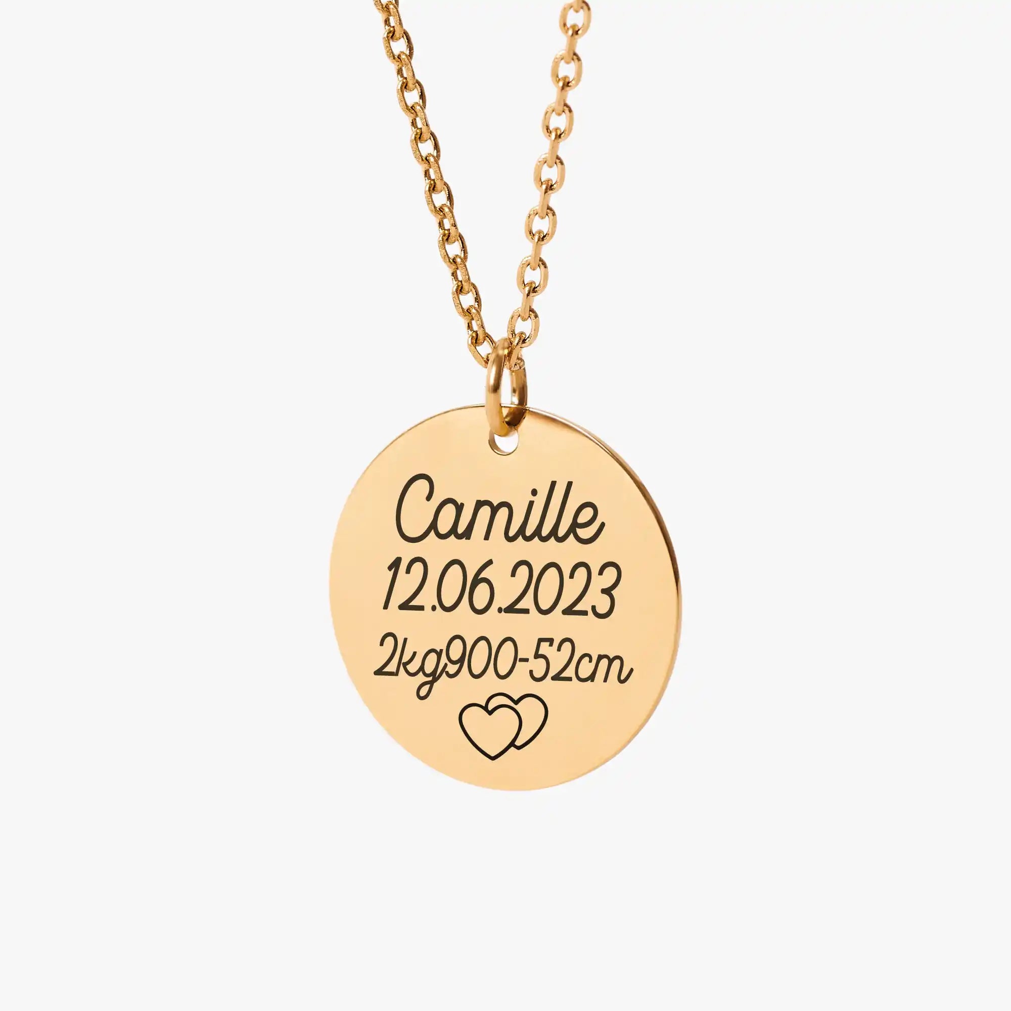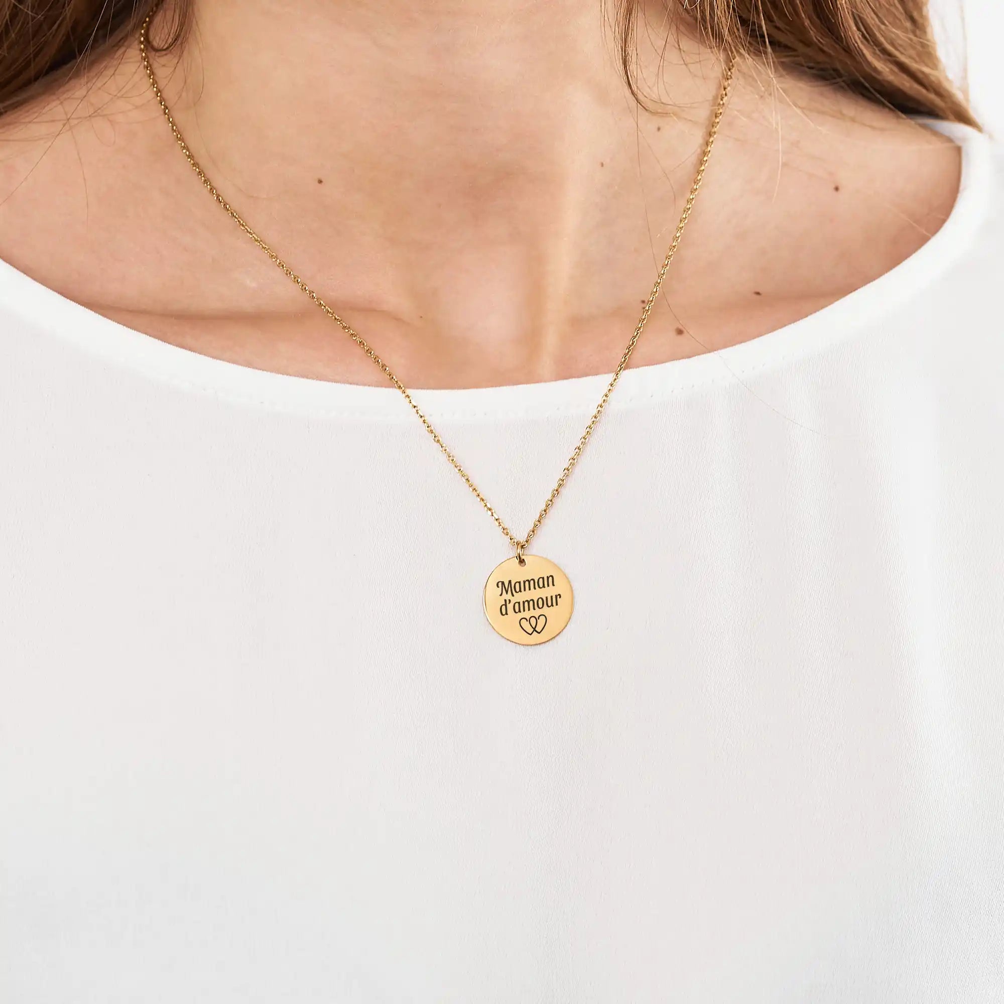 Créez un collier personnalisé unique, en gravant la médaille au recto et au verso. Votre bijou sera soigneusement personnalisé dans notre atelier en France et expédié sous 48h.