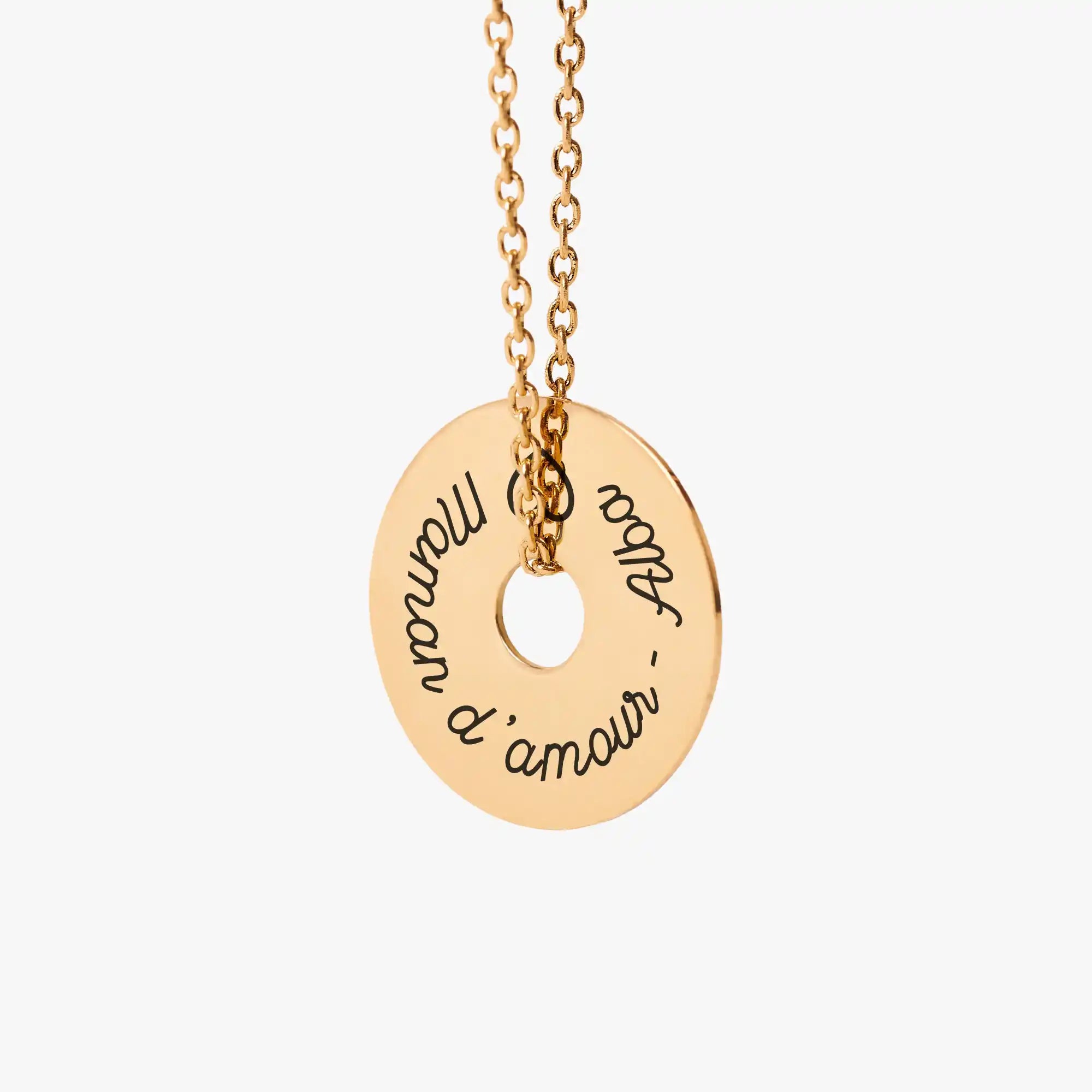 Créez un collier personnalisé unique, en gravant la médaille au recto et au verso. Votre bijou sera soigneusement personnalisé dans notre atelier en France et expédié sous 48h.