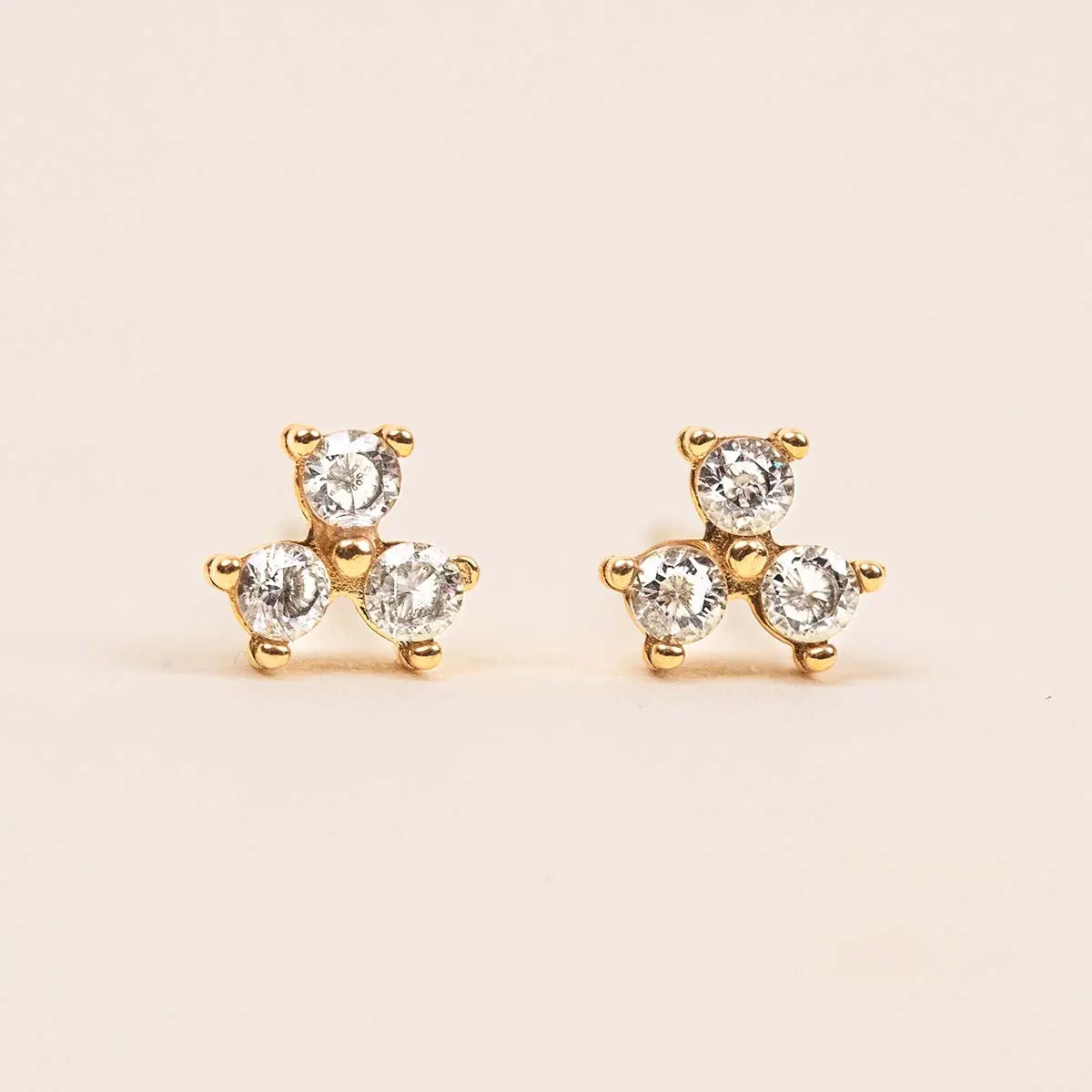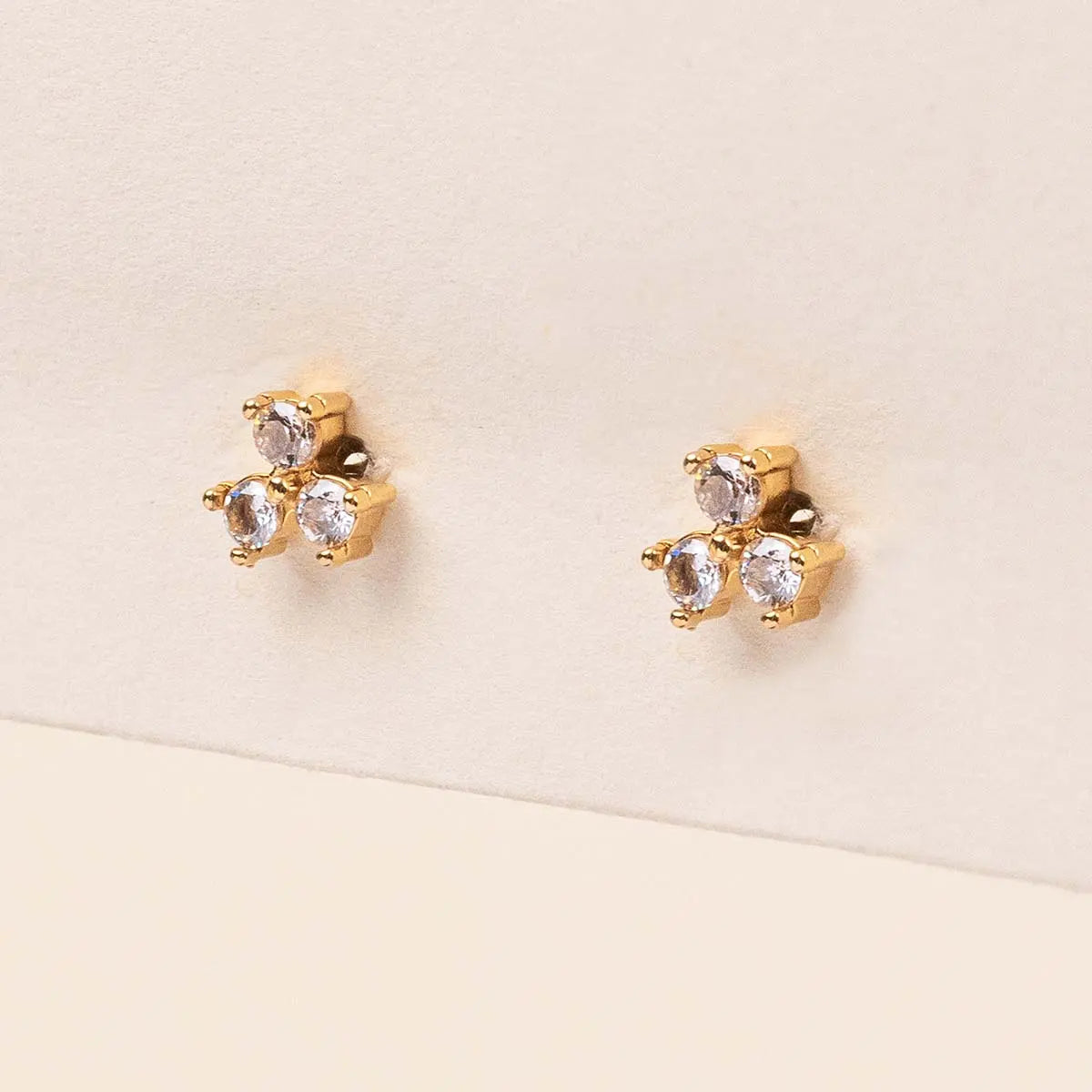 Illuminez votre regard avec ces puces en acier inoxydable doré, composées de trois zirconiums sertis en forme de trèfle. Discrètes et raffinées, elles apportent une touche d'éclat subtil et lumineux à toutes vos tenues du quotidien, de jour comme de soir.