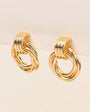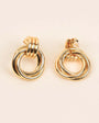 Sublimez votre style avec ces boucles d'oreilles pendantes en acier inoxydable doré, composées de trois anneaux ronds entrelacés fixés à un point d'attache strié. Un bijou graphique et lumineux qui capte la lumière à chaque mouvement pour un effet remarquable.