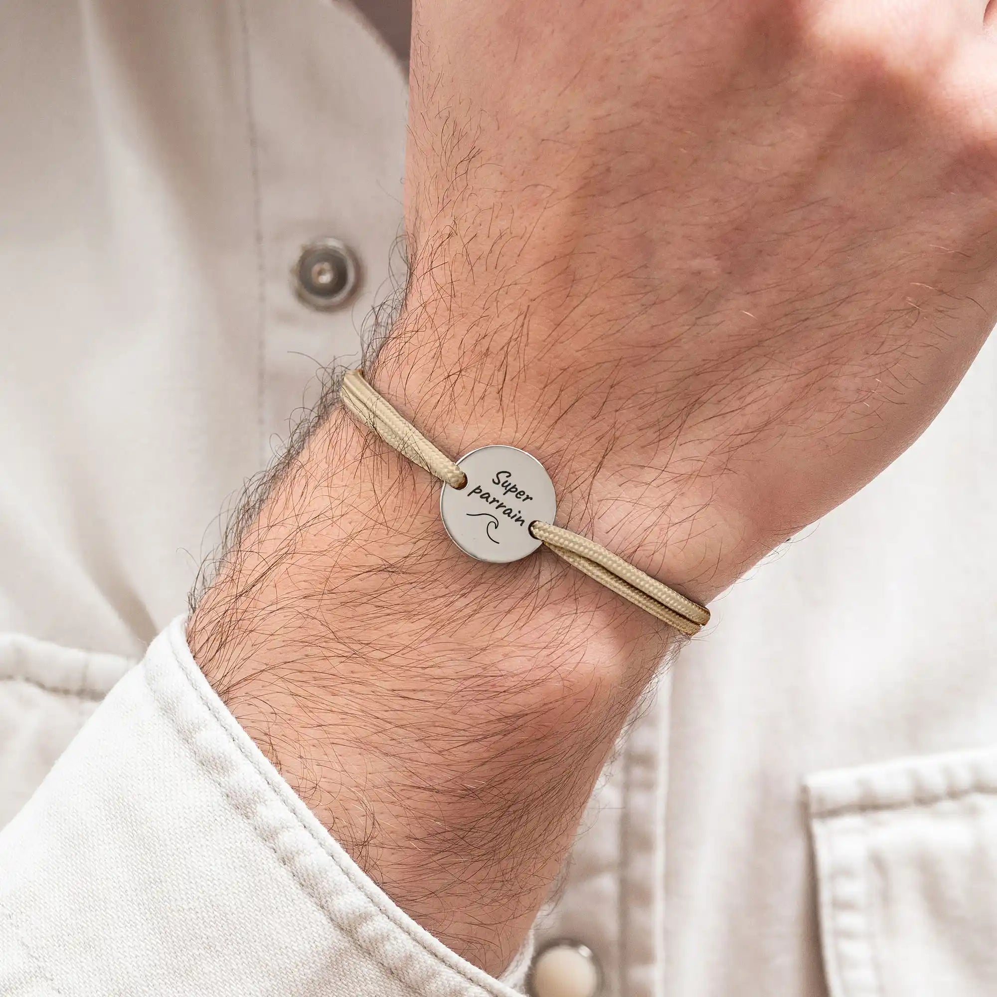 Créez un bracelet à cordon personnalisé unique, en gravant la médaille au recto et au verso. Votre bijou sera soigneusement personnalisé dans notre atelier en France et expédié sous 48h.